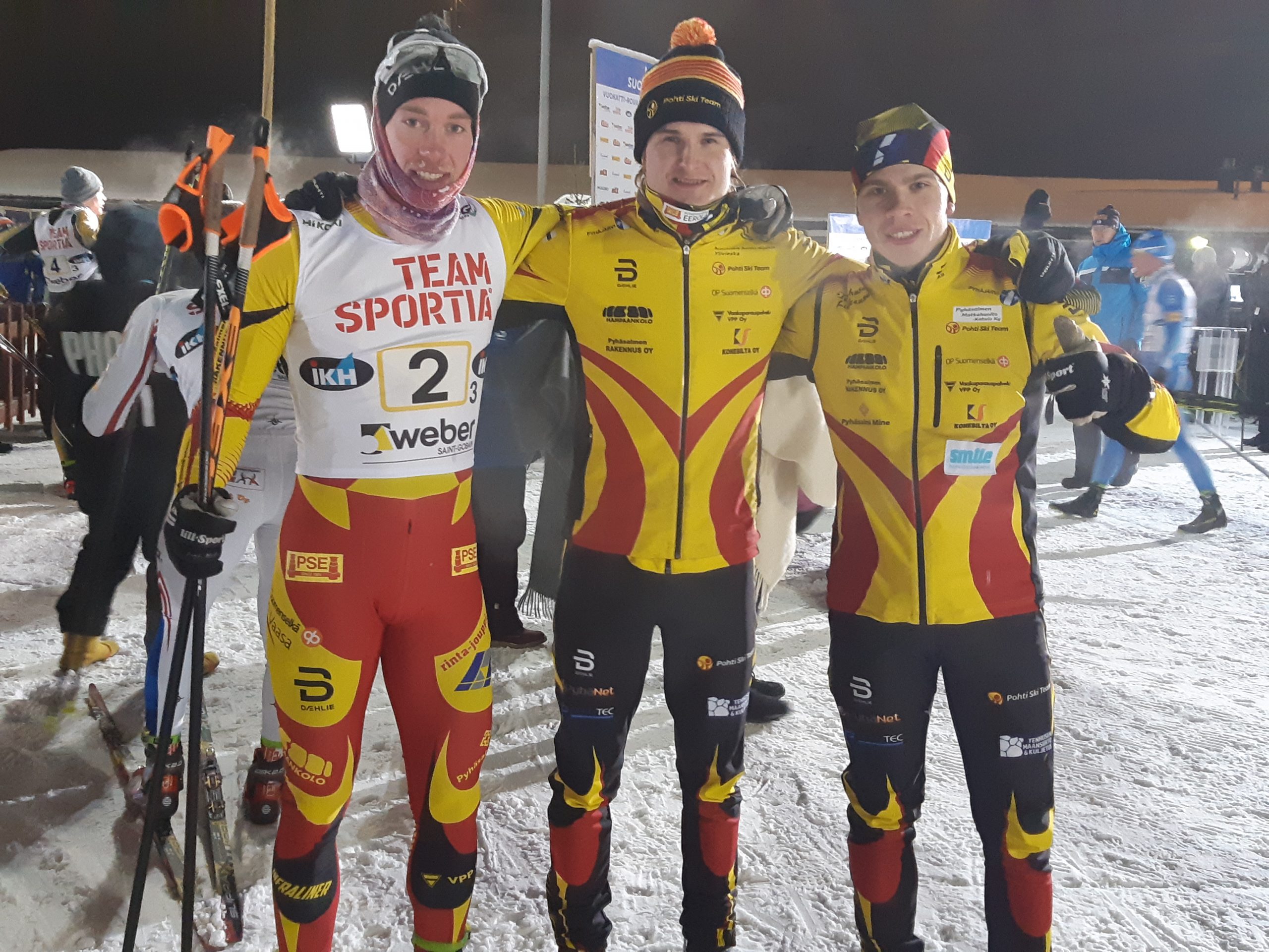 hiihtivät Joel Ikonen, Iiro-Mikko Harju ja Joni Mäki (kuva). Toisessa kuvassa